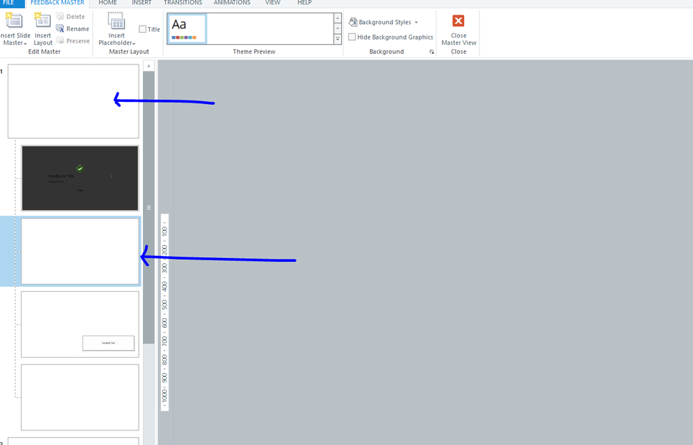 I have removed all elements from the Feedback Master and the Try Again Feedback layout: