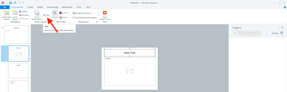 This will create a text box with the "Slide Title" text as a placeholder, and this text box is where slide titles from PowerPoint will be placed. You'll want to make sure that you have your slide titles in the PowerPoint file before importing them into Storyline 360 for the text to carry over properly.