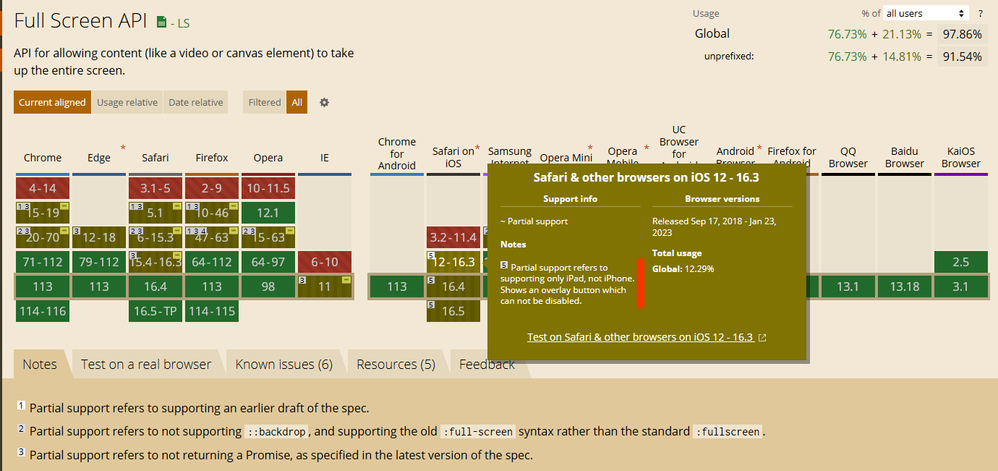 I also have an issue with using FULL SCREEN on iPhones when using Safari and Chrome. Is there any chance to avoid this?