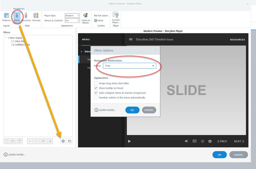 - Storyline 360 Timeline Issue Preview Screen Shot_Slide 1.jpg (Note: In the screen shot, the player is still in the middle of playing the objects on the timeline.)