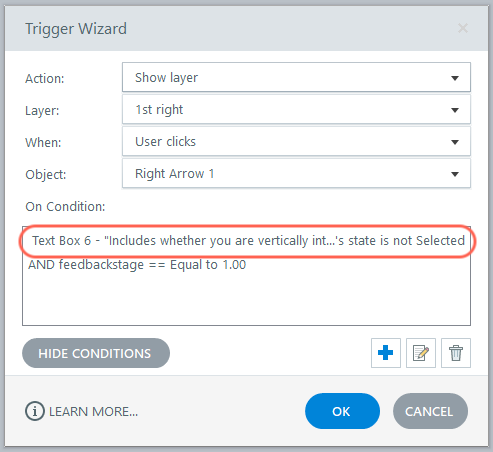 I have 5 2 state buttons (normal/selected) and yet when i submit the 'pick many' interaction (using my own 'proceed' button) and then try and show the detailed feedback layers, it always shows the 'right' layers, even if the button is in the wrong state. The only 'wrong' layer that shows correctly is for the button that is correct if it's in the selected state.