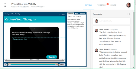 I am running into a problem where I have a text entry box in a Storyline 360 course that is not behaving itself. I'm wondering if anyone has a solution to this.