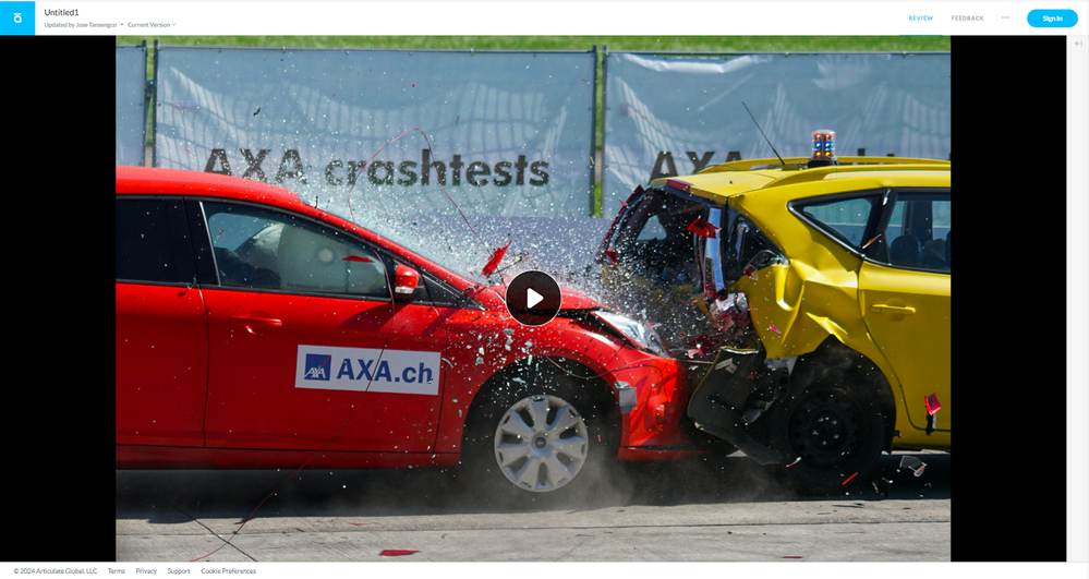 An audio or video file needs to be placed on the first slide of your Storyline 360 project to trigger the cover photo screen. In the screenshot below, I placed an audio file on the first slide, and this is what it looks like when I open the course in Review 360:Without a media file present in the first slide, it will automatically load its contents, skipping the cover photo screen.
