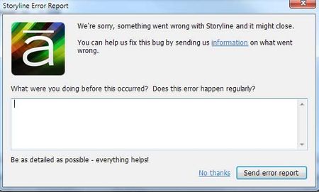Articulate Storyline crashes probably 5+ times a day for me (this has been going on for weeks). It always occurs when I try to preview a timeline for a slide. I hit the "play" icon in the lower le...