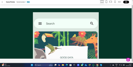 BUG There is a bug, but likely not to be seen by users, as you'd need a screen size larger than ~1700px to see it. The green background continues to grow beyond the maximum height of the embedded Storyline file.