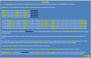 Once Chapter 6 variable is True, then the state of the Next button on the Homepage changes to Normal (from hidden). There is a True/False variable on the Final Page the changes to True when the learner clicks the Next button. This triggers a change to the End of Webinar button the change state to Normal (from hidden).