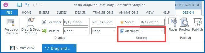 Establezca "Intentos" en el número de intentos que desea que alguien tenga. Eso agrega automáticamente una capa "Inténtalo de nuevo".