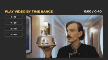 In the example below, my video is 40 seconds long. On the left side, I’ve added buttons that trigger different playback segments: 0–10, 11–20, 21–30, and 31–40 seconds. When a range is selected, the video plays from the defined start point and pauses at the endpoint, giving you control over what happens next.