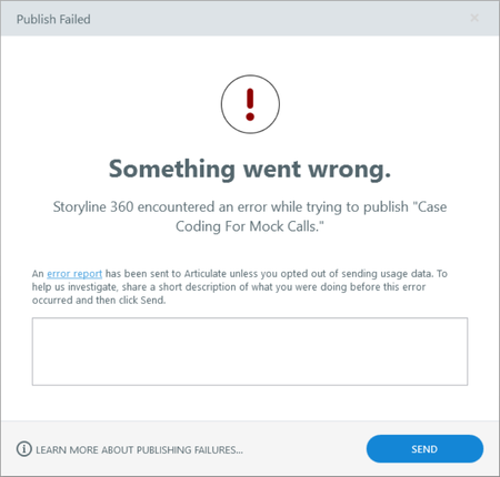 My team and I have been trying to publish some storyline files to review today, but we keep getting an error. I didn't see anything on the Articulate Status page, so I thought I would c...