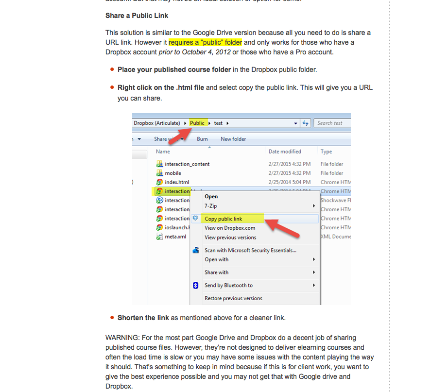 I apologize for not getting this; you probably wonder why I would even attempt instructional design if I cannot figure this probably simple task out :( If someone can explain step by step, not in the "publishing a course for the web" part that I've linked above, but VERY simple, please please help. BTW I've never used Dropbox before, so I am unfamiliar with any of that, and I don't have a website with my name which is why I've used Blogger for sharing info for several years.