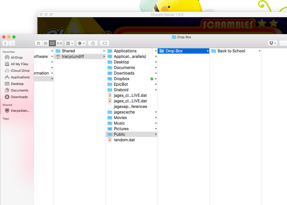 Do you have Dropbox installed on your Windows side as well as the Mac side? I'd keep them separate as sharing across the platforms could cause issues with the files themselves.