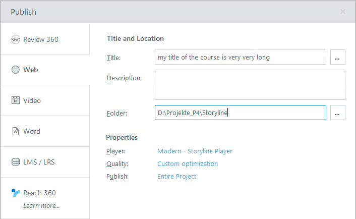 * storyline 3.78 only allows 8 words for the publish folder