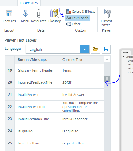 Under player and text labels, the updates to IncorrectFeedbackTitle and CorrectFeedbackTitle affects both the feedback text block in the feedback layer as well as the overlay at the bottom of the slide in review mode.