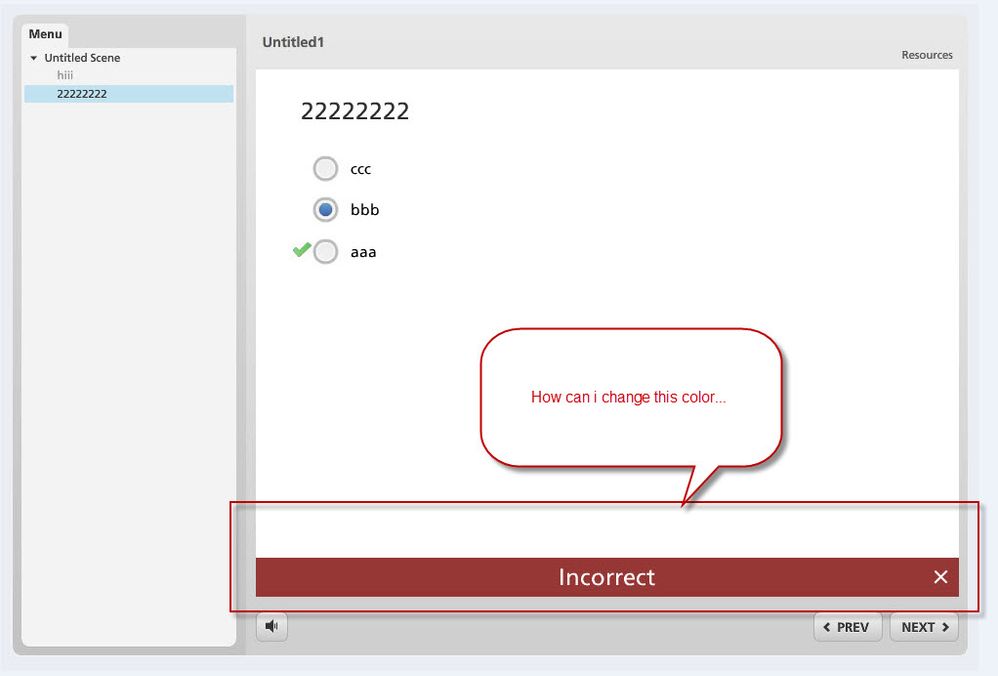 Just watched Jeannette's great screenr on creating customized Quiz Review slides. In addition to this customization, is there a way to move/edit the "Incorrect" and "Correct" text rectangle that appears at the bottom of each review slide? I don't think it was customizable in Studio Quizmaker, but maybe it is in Storyline? Thanks!