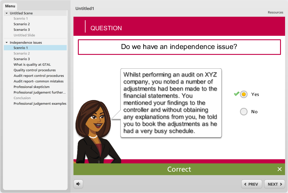 But when I review the question- no slide navigation buttons apper in the project