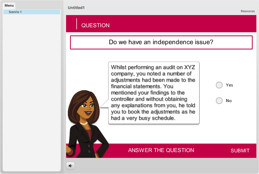 Base Layer of one of the quiz questions with custom Submit button only.