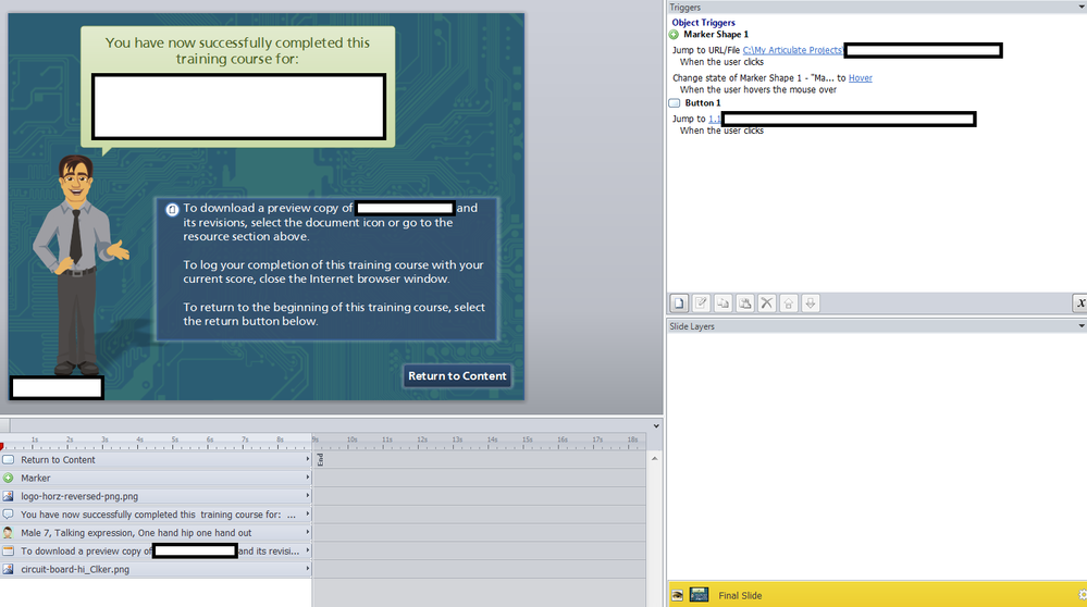 The two places I have created a return to content button are on the Success layer of the Results Slide and the /Last Final Slide. I've considered placing it only on the final slide, but the issues still exists.