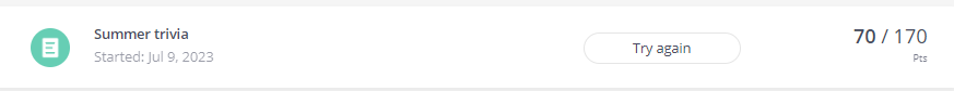 However, betting questions messes up the score. This user answered 7 questions correctly, but placed bets to increase their score. Successful bets let to them earning 100 points over 7 questions: