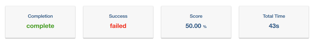 - passed: The learner has achieved the minimum performance criteria (e.g., passing score).