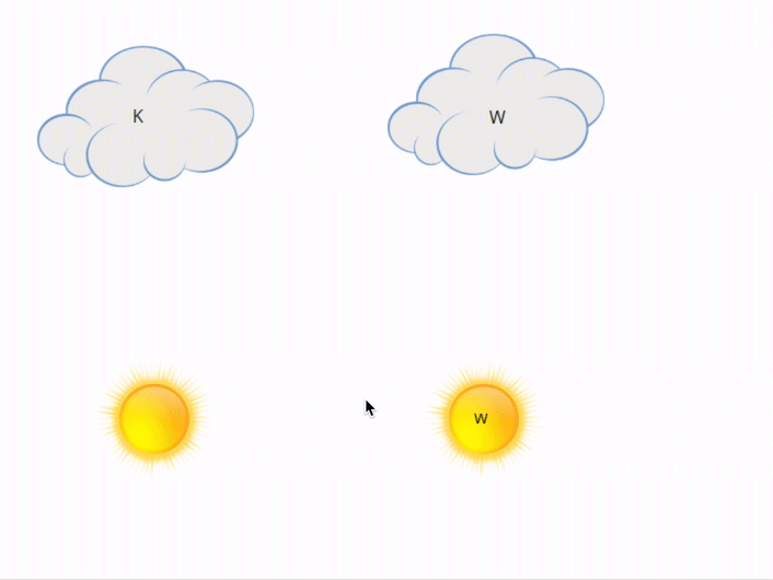 On the attached image, I would like to do is match the sun with small w with the cloud with big W and the same for the sun with small k and cloud with big K. If user matches the sun with small w incorrectly meaning they match it to the big K, it should display the feedback message but then the sun with small w should go back to its original position. If user matches everything correctly, it would move on to the next slide.