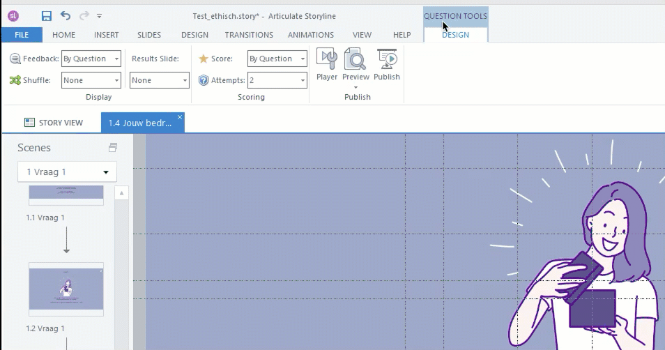 The built-in triggers show the Try Again layer if there are any attempts remaining. If there are none, they show the Incorrect layer. Copy the above trigger to the Onjuist layer, as well as the onjuist Probeer opnieuw layer.