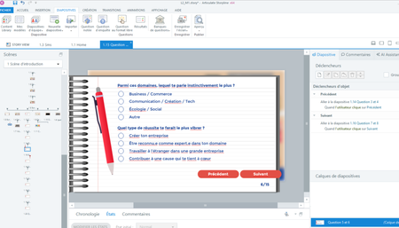 Hello, I have created a 15-question questionnaire where the learner answers freely without any feedback, so I haven’t created quiz slides. I have 8 slides of questions. At the end of the questionnai...