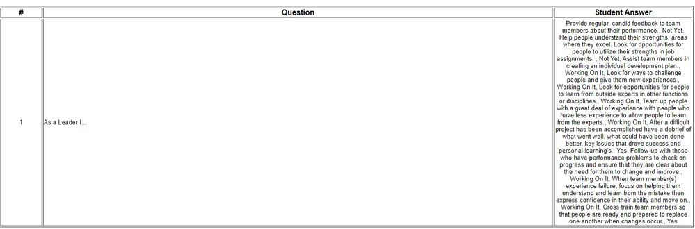 I've set up a Likert survey in a course as a quick self assessment. I added the Print Results button but when this is clicked, all of the results are grouped together and unreadable.