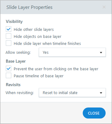 This prevents objects on the base layer from being tabbed to while the learner is on this layer. Also, every object on this layer is hidden from the accessibility tools except for the feedback text box and the Continue button.