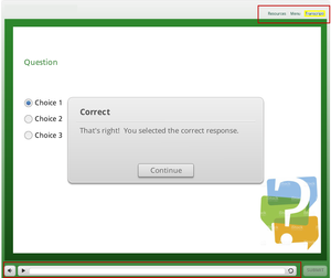 Issue: After the quiz feedback layer opens, the screen reader will first read the player elements (in red boxes below)...
