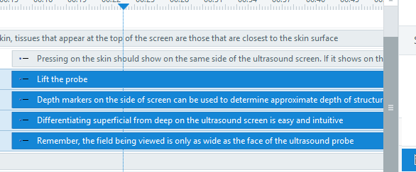 When animating text, specifically bullet items on a timeline (fade in animation, Effect Options - By Paragraph) I move all the separate bullets to the beginning of the timeline (I'm in undocked mode for the timeline), I have selected all text items (paragraphs) by clicking to top item then mouse over the bottom and shift-click. The timeline has a voiceover. I click the 'play' icon in the lower left. As the narration/playhead reaches an entry point for a bullet item I stop the playhead, move the entire list of bullet items to that entry point. I 'ctrl-click' the top bullet-item which deselects it and continue by click 'play' again. At the next bullet entry point I pause the playhead, move the remaining bullet items to that entry point, deselect the one I want (ctrl-click) and repeat until all bullet items are in their respective entry points.