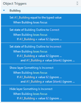 Here are the triggers attached to the Building text entry field: