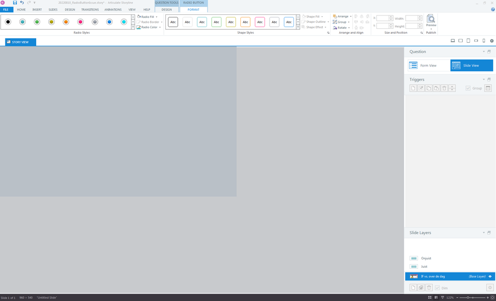 Weird thing going on here: when I make a radiobutton, and if the linked text is in 2 lines, storyline sometimes (not everytime as you can see in the video: https://360.articulate.com/review/content/97612add-4a29-4a5f-8f31-96a0fd7dbc90/review) automatically gives different lay-outs to the other states, like Hover, Down, etc. See image in attachment. I didn't do anything in particular as I recall.