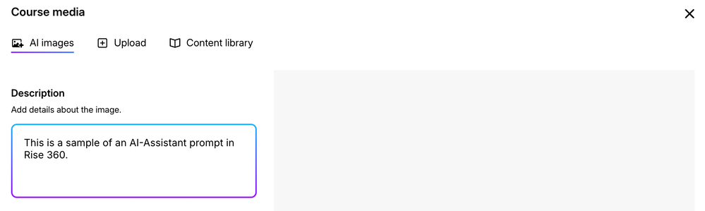 Compared to Rise 360's AI-Assistant prompt field, where the font color is more pronounced.