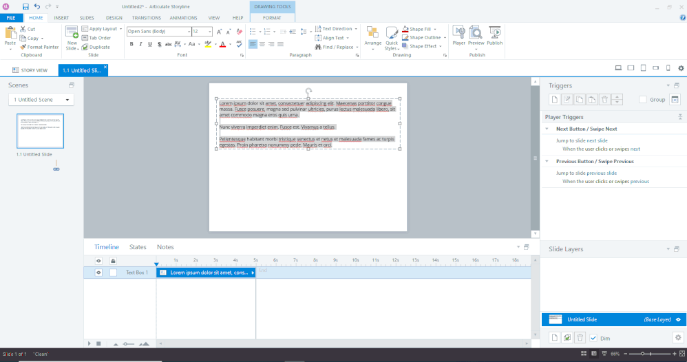 Best fix I've found is to do it in PowerPoint and then copy/paste it into Storyline.