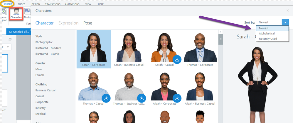 We do not have an indication within Content Library 360 for which Photos, Illustrations, Icons, and Videos are marked new. We do, however, have an indication of this within the Characters section, where you can view in order of Newest: