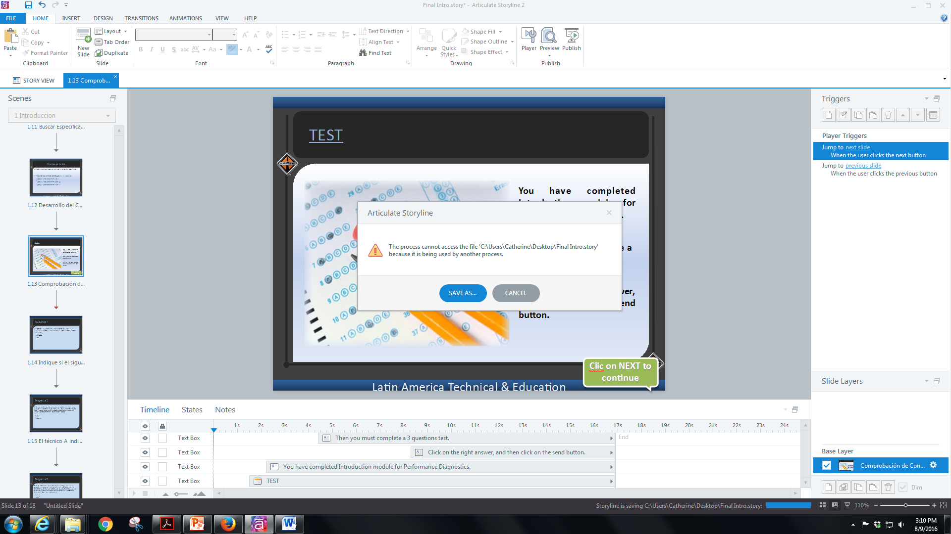 I'm having this error windows when I try to save a project in Storyline 2 Updated 10. It is the same one other users reported before, but I can't see an specific solution for that: "The...
