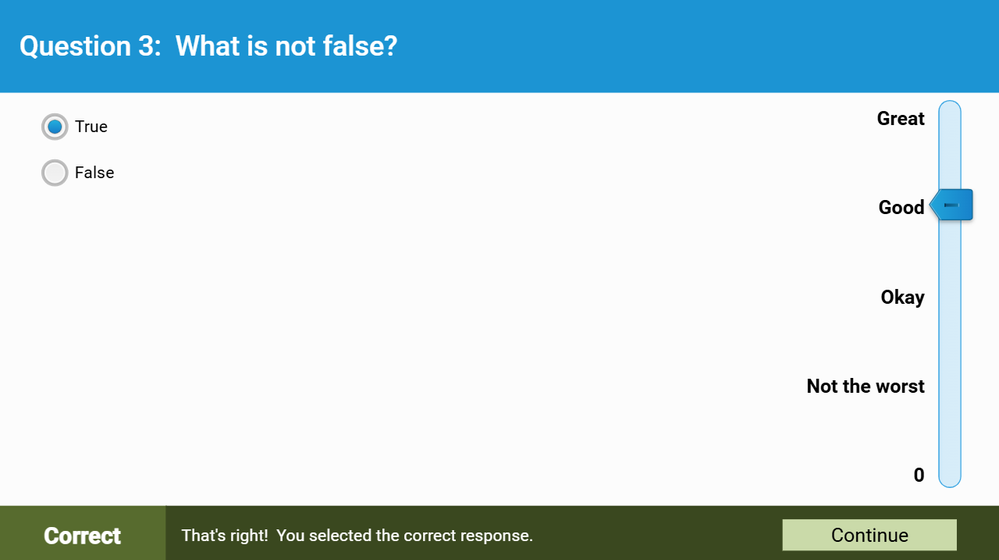 What a great demo, Judy! Thanks so much for sharing. I'm sure this will help community members who would like a visual gauge for how well a learner is doing within a quiz.