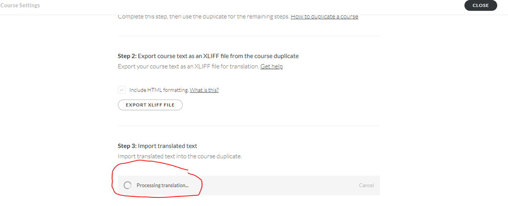 Unfortunately the import of the translation gets stuck - we tested with a generated 2 MB translation file and we got stuck unlimited on the processing phase. How long does it take? Our full translated file is 9 MB (with HTML formatting) - what is the expected processing time?
