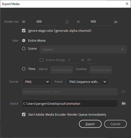 now use APNG Assembler to combine the filesimportant: use Compression Method "Zopfli" -> very slow, but the only compression, which seems to work with storyline