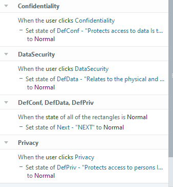 The definitions and Next Slide buttons are initially set to hidden, and the triggers I have set up sets them to normal: