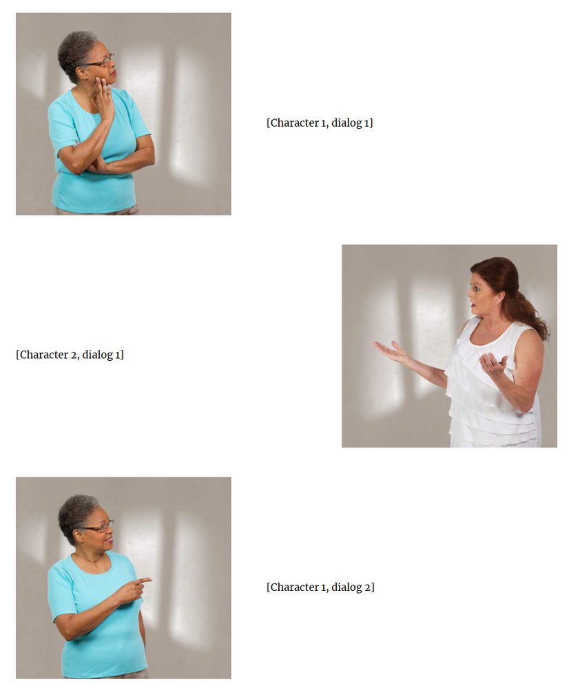 I tried to create a scenario where two people could face each other and have a conversation. This is in Rise 360. Is that possible and if so, can I see how it was developed?