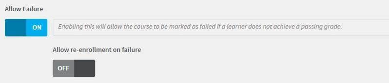 And then also at the course level (so after you click the Submit button), you must go to the Completion tab and toggle the field ON for Allow Failure
