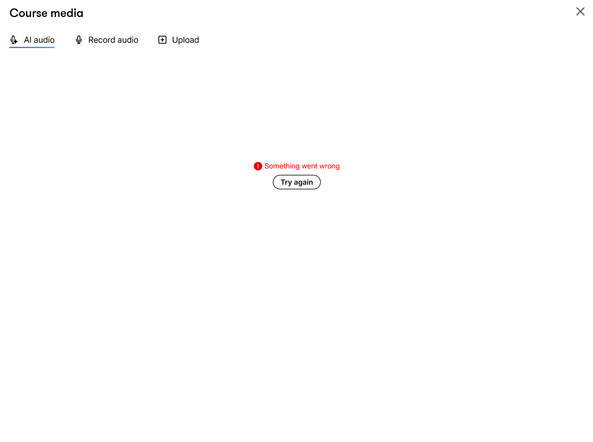 Thanks for reaching out! I understand that you are receiving an intermittent error message when working with AI audio in Rise 360.