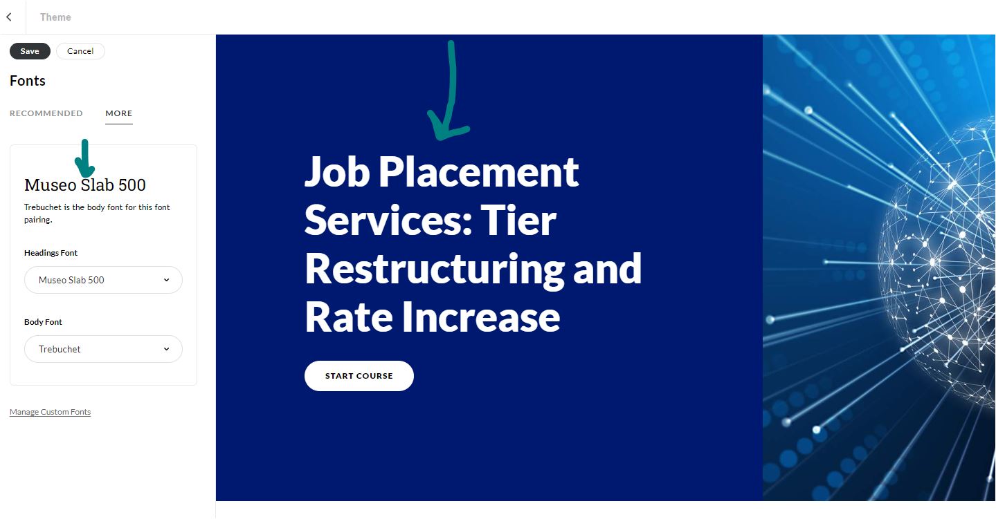 I uploaded Museo Slab 500 from Fontspring. I did one file for regular and one for italic. They uploaded fine, I selected Museo Slab 500 for my headings, but the font doesn't take effect. Attached is the font file and a screenshot of what my headings font looks like when I apply this font. Thanks!