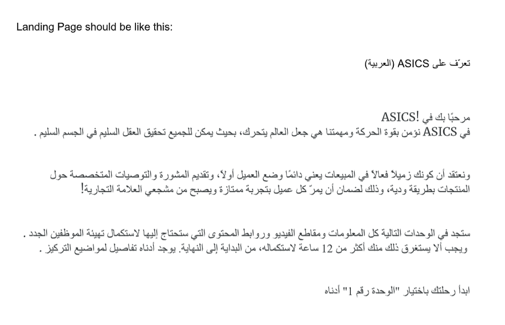 I'm working on uploading an Arabic XLIFF file into RISE (translated from English) and am finding that there are major formatting problems that affect the text. Does anyone have tips and suggestions for making sure Arabic text is uploaded and displayed properly?