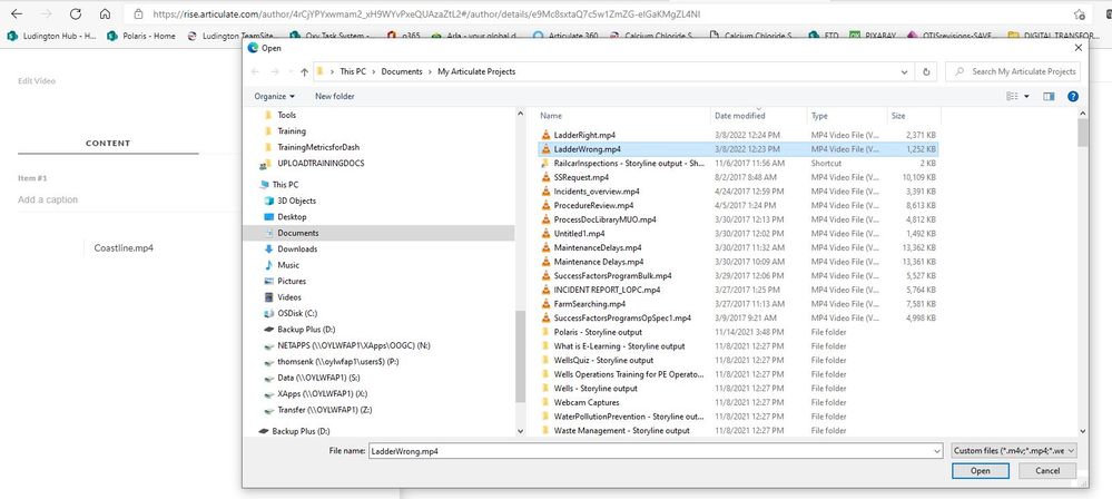 Hello I am getting an error message when I try to upload videos in rise 360.