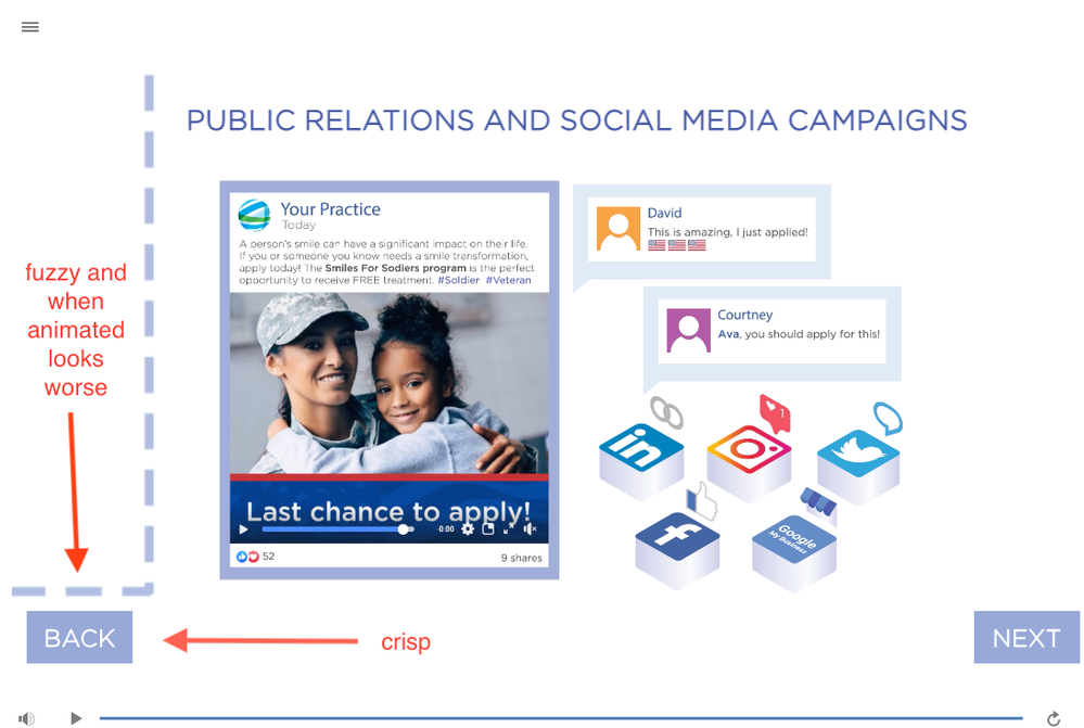 I can't believe blurry dashed or dotted lines has been an issue for 5+ years that Articulate hasn't done anything about.