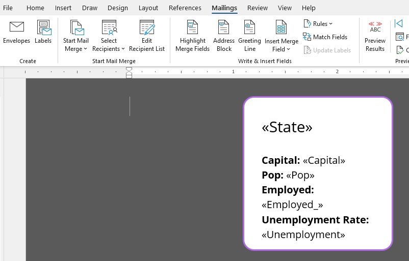 In Word, I created a mail merge and formatted it so that the output would match my color-scheme in my Storyline file. Then I ran the merge.