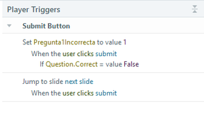 Using the Question.Correct variable in your scenario can be tricky. Jumping to the next slide without the presence of feedback layers and a trigger to submit the interaction can result in an incorrect change to the Question.Correct variable. Please find the attached .story file, which provides a solution to your problem. Just adjust the triggers on the result slide to show or hide text based on the values of the question's incorrect variables.