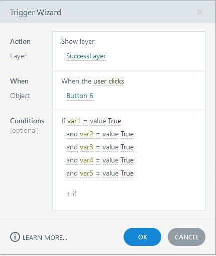 - Can your successLayer be a new slide? If it can then after those IF statements you can add a new trigger for Hiding the current layer